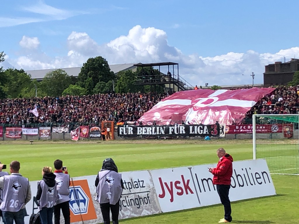 Swoją drogą to dość absurdalne, że jest pięć grup czwartej ligi, a tylko cztery miejsca w 3. Lidze, co powoduje, że rotacyjnie – na koniec każdego sezonu – muszą być rozgrywane baraże o awans. Meister müssen aufsteigen! – czyli „Mistrz musi awansować!” napisali na jednym z transparentów kibice BFC Dynamo, którym trudno nie przyznać racji.