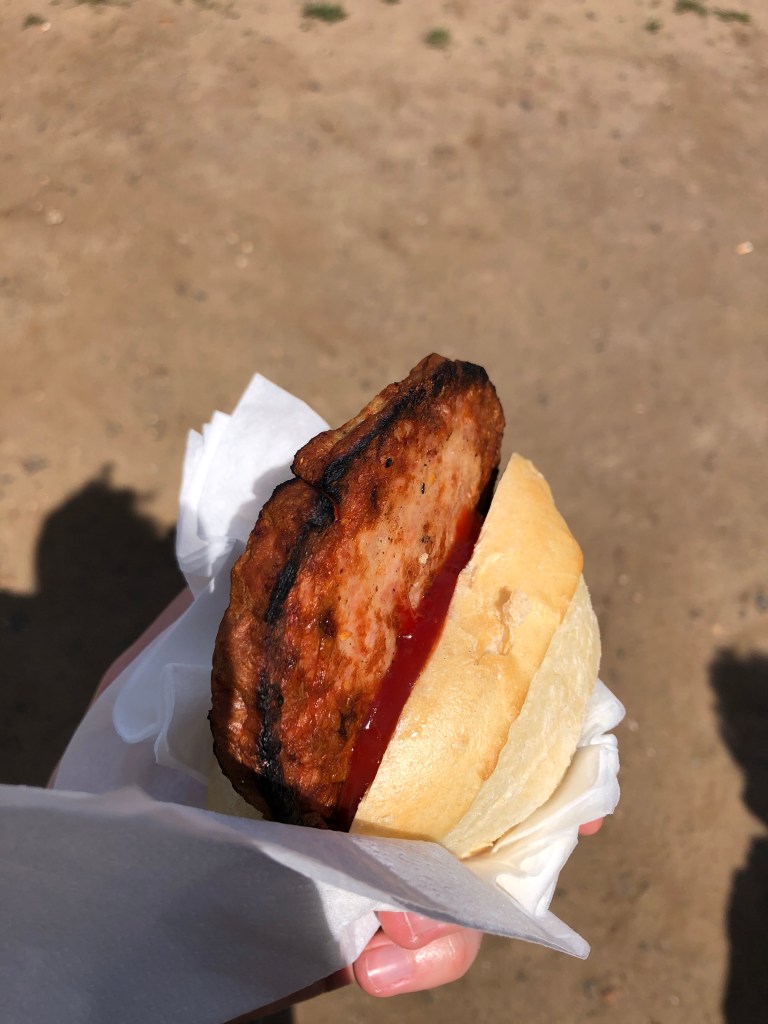 My początek meczu spędziliśmy natomiast po drugiej stronie boiska. W okolicach trybuny, gdzie są tylko miejsca stojące i skąd prowadzi się zorganizowany doping. Tutaj też nie brakuje stoisk gastronomicznych i za 3,5 euro można zjeść przepysznego jagdwursta w bułce, który dosłownie rozpływa się w ustach.