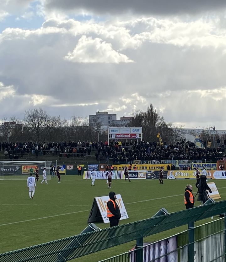 W sektorze gości zameldowało się około 400 fanów z Lipska i okolic. Byli nieźle oflagowani, mieli kilka przyzwoitych momentów, jeśli chodzi o jakość dopingu, ale generalnie – podobnie jak zresztą Energie Cottbus – rozczarowali. Moment prawdziwego wybuchu fanatyzmu mieli w sumie tylko w 88. minucie, kiedy LOK doprowadził do wyrównania. Wtedy chyba kilka osób znalazło się nawet na murawie. Nieoczekiwanie najlepszą – przynajmniej jak do tej pory – grupą kibiców gości, którą zobaczyłem na żywo na Sportforum Hohenschönhausen są fani z Oldenburga, który w zeszłym roku na baraże o 3. Ligę przygotowali oprawę i trochę pirotechniki. Trzeba jednak oddać, że sektor gości znajdujący się na łuku jest bardzo oddalony od murawy i ma fatalną akustykę, a odpalaniu pirotechniki bardziej sprzyjają spotkania rozgrywane przy sztucznym świetle (te możliwe są w zasadzie tylko w piątki), z czego ostatnio (10 lutego) skorzystali kibice Chemnitzera FC – prezentując racowisko.