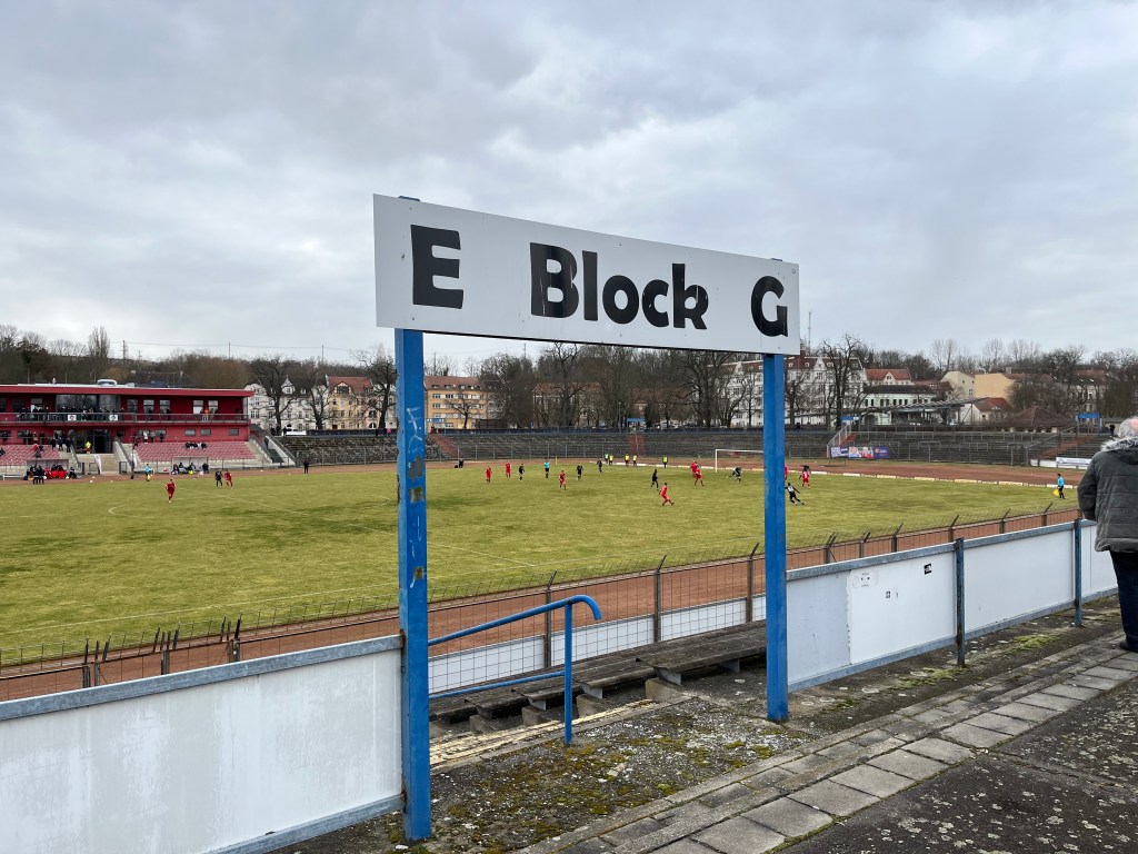 Nie będę ukrywał, że choć klimat tego spotkania był wspaniały, to sama atmosfera na stadionie nieco mnie rozczarowała. Zaledwie 140 widzów – nawet pomimo przenikliwego zimna oraz opadów śniegu – było frekwencją zdecydowanie poniżej oczekiwań. Szczególnie że na tę liczbę składała się grupka kibiców ze Schwerina oraz kilkunastu groundhopperów, którzy kręcili kółka po stadionie z taką częstotliwością, jakby przygotowywali się do dwudziestoczterogodzinnego wyścigu Le Mans.